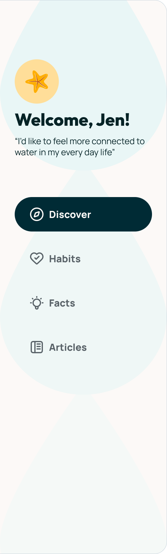 Water is universal, but our relationship with it is deeply personal. The onboarding flow learns what matters to each user, are they drawn to ocean conservation? Curious about hydration science? Interested in water infrastructure? This shapes the content they see, making every session feel tailored rather than generic.